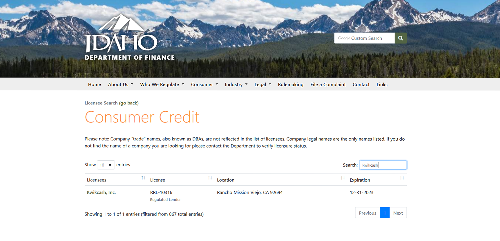 KwikCash makes a wide spectrum of loan products available to accommodate customers with a range of credit scores. The lowest rates and higher loan amounts are reserved for customers with excellent credit. Actual rates vary by applicant depending on state of residence, your supporting documentation, and underwriting. Published rates are subject to change without prior notice and not all applicants will qualify. Underwriting guidelines and other terms and conditions apply to all loan applications.